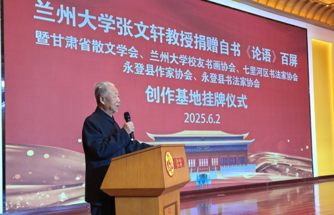 中國甘肅網6月5日訊 6月2日,永登縣樹屏龍王池文化樂園內群賢畢至,張文軒《論語》百屏捐贈儀式與甘肅省散文學會等多協會創作基地掛牌儀式舉行。