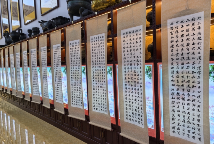 儀式結束后,嘉賓與游客共同參觀國學殿堂,近距離領略了張文軒《論語》百屏書法作品的藝術魅力與經典智慧。此次活動不僅是文化的深情饋贈和創作基地的落成,更為甘肅文化事業繁榮發展注入了新動力,激勵更多人投身傳統文化傳承與創新,也讓永登這片文化底蘊深厚的土地,在文化傳承與創新的道路上邁出更為堅實的一步。(焦述賢 文/圖)