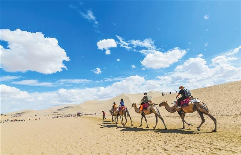游客在鳴沙山游玩 王斌銀