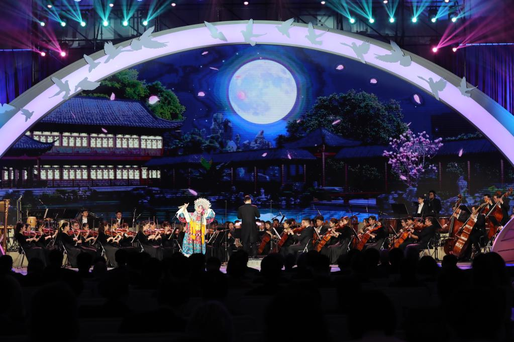 與此同時,兩名中國雜技演員在位于上海黃浦江畔的“世界會客廳”舞臺上表演“肩上芭蕾”,用肢體語言“描繪”翩翩起舞的一雙蝴蝶。