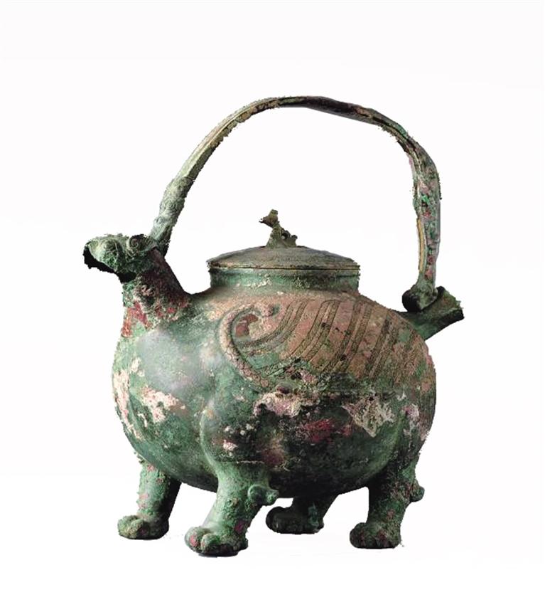 展覽以粵隴兩省精品文物為依托,遴選廣東省博物館、甘肅省博物館、南越王博物院、甘肅省文物考古研究所等兩省多家文博單位文物藏品逾500件。在展廳入口處,并列展出的“蜻蜓眼玻璃珠”一顆為甘肅省博物館館藏,另一顆為廣東省博物館館藏。甘肅省博物館館藏文物翼獸青銅提梁盉也是首次亮相廣東,翼獸青銅提梁盉巧妙地設計成一只具有雙翼的四足獸,以龍為提梁,以鳳為蓋鈕。