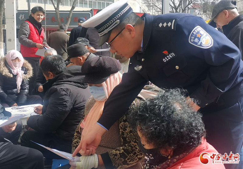 蘭州市公安局交警支隊龔家灣大隊民警走進龔家灣街道龔西路社區,通過“拉家常”與居民“零距離”交流,普及一盔一帶等交通安全常識。