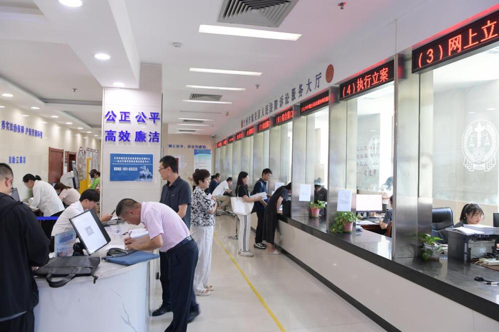 如今,網上立案服務讓大部分當事人及其代理人足不出戶就可以立案。訴訟服務中心集齊了案件查詢、立案、保全、繳費退費等服務功能,并設有專人導訴答疑。即使在辦事的高峰期,各窗口依然運轉有序。