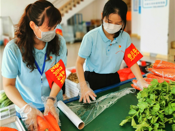 海南省保亭縣紀委監委第一黨支部組織黨員先鋒隊下沉一線,保障疫情期間群眾的蔬菜供應。(海南省保亭縣紀委監委 王秋婷 攝)