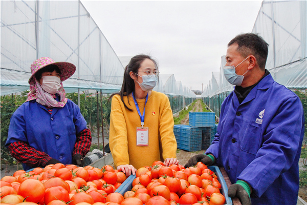 福建省福鼎市太姥山鎮紀委90后女干部深入番茄種植園地了解群眾需求,協調解決困難,為疫情防控和監督執紀奉獻巾幗力量。(福建省福鼎市紀委監委 李珊珊 攝)