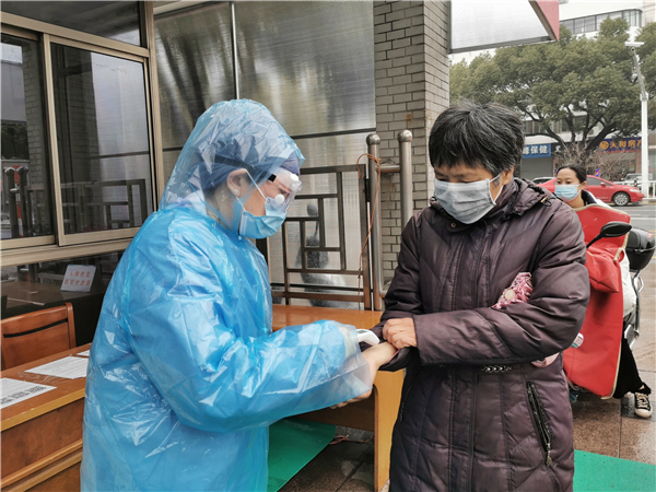 江蘇省常熟市第五人民醫院監察室主任林潔已離開臨床崗位很多年,疫情發生后她選擇在一線,在發熱病人預檢分診處,守好第一道關口。(江蘇省常熟市紀委監委 顧薇 攝)
