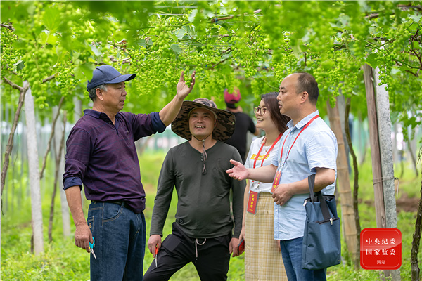 杭州市淳安縣紀檢監察干部在富文鄉走訪葡萄種植戶,了解農業產業扶持政策兌現情況,幫助解決困難,通過精準有效監督保障各項惠農政策落實。(杭州市淳安縣紀委監委 毛勇鋒 攝)