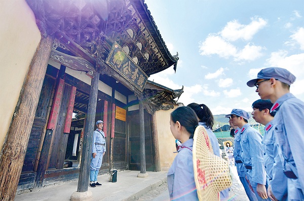 福建省長汀縣中復村的紅軍烈士后代向參觀學習的黨員干部講述長征的故事。 新華社記者 魏培全 攝
