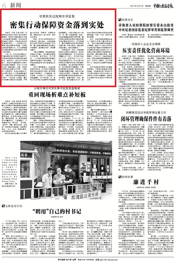 同時,針對中央特殊轉移支付機制資金(直達資金),該省紀委監委正在研究制定專項監督工作方案,著力監督保障和推動資金直達市縣基層、直接惠企利民、使用精準高效。