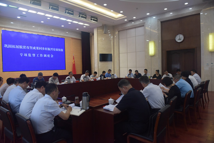 會議指出,做好鞏固拓展脫貧攻堅成果同鄉村振興有效銜接,是黨的十九屆五中全會作出的重大決策。要統一思想,提高政治站位抓落實,強化職責擔當,抓好工作落實,推動鞏固拓展脫貧攻堅成果同鄉村振興有效銜接工作開好局、起好步、見實效。要對照《指導意見》和實施方案,不折不扣抓落實,明確的重點任務和方法路徑,認真學習,仔細對照梳理,在推動政治監督具體化、深入查處違紀違法案件、深挖細查工程建設領域和國有投資平臺領域問題線索等方面下功夫。