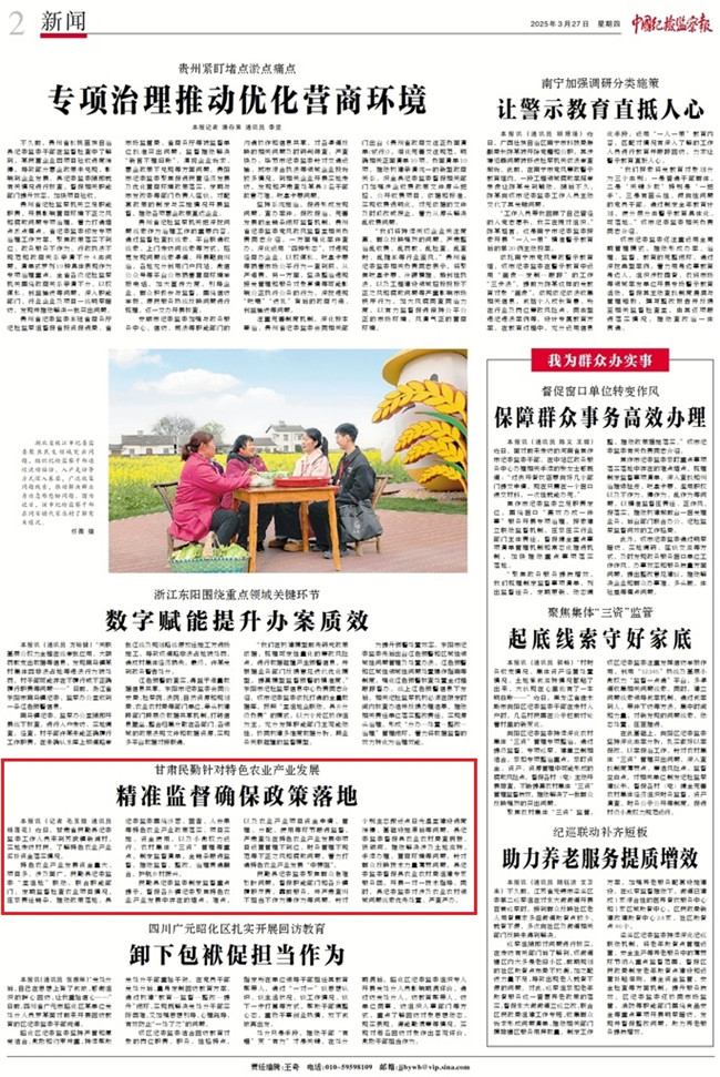 民勤縣紀委監委制定監督重點提示,督促各鄉鎮紀委聚焦特色農業產業發展中存在的堵點、難點,以及農業產業項目資金申請、管理、分配、使用等環節跟進監督,嚴肅查處在特色農業產業發展中項目運營管理不到位、財務管理不規范等不正之風和腐敗問題,著力打通特色農業產業發展“中梗阻”。
