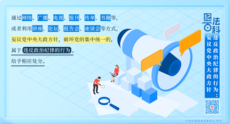 執紀監督中發現,有的黨員、干部“當面不說、背后亂說”“會上不說、會后亂說”“臺上不說、臺下亂說”,對黨中央大政方針說三道四。這些言論擾亂黨員、干部思想,破壞黨的團結統一,妨礙黨中央大政方針的貫徹落實,必須依規依紀嚴肅處理。