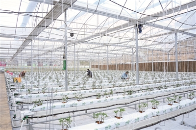 四川省黑水縣以建設小麥蔬菜現代農業園區新品種選育及中試熟化試驗基地為抓手,配備農業科技設施設備,賦能高原農產品品種的選育優化。圖為近日,技術人員和工人為正在進行培育的番茄苗裝上番茄夾。新華社記者 王曦 攝
