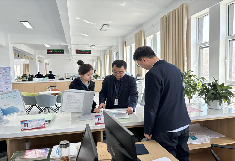 圖為民勤縣紀委監委干部在縣稅務局辦稅服務大廳對企業審批服務、惠企政策落實等工作情況開展監督檢查。(馬龍 攝)