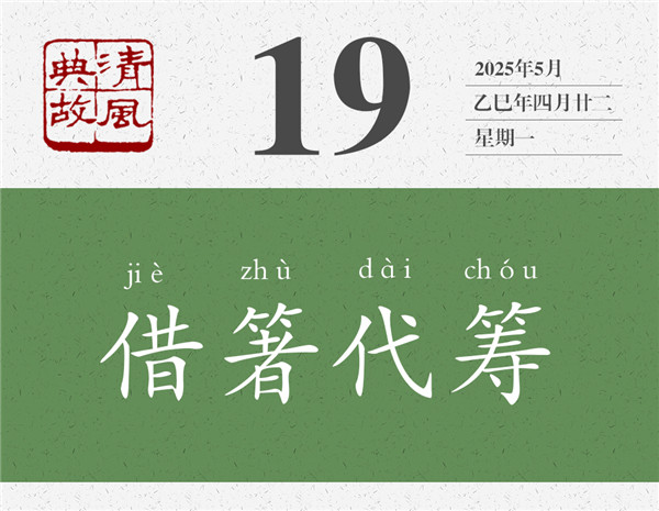 《史記·留侯世家》載:“食其未行,張良從外來謁。漢王方食,曰:‘子房前!客有為我計橈(náo,同撓,削弱)楚權者。’具以酈生語告,曰:‘于子房(張良,字子房)何如?’良曰:‘誰為陛下畫此計者?陛下事去矣。’漢王曰:‘何哉?’張良對曰:‘臣請藉前箸為大王籌之。’”這段話意思是,酈食其還沒有出發的時候,張良從外面回來拜見劉邦。劉邦正在吃飯,就讓張良過來,說有人給我設計了一套削弱項羽的計劃,并將酈食其的話一一告訴了張良,問張良這個計劃怎么樣。張良問是誰替您出的這個主意,如果這么干的話你的大事就完了。劉邦問為什么呢,張良就說:“請允許我借您面前的筷子為您分析籌劃一下吧。”