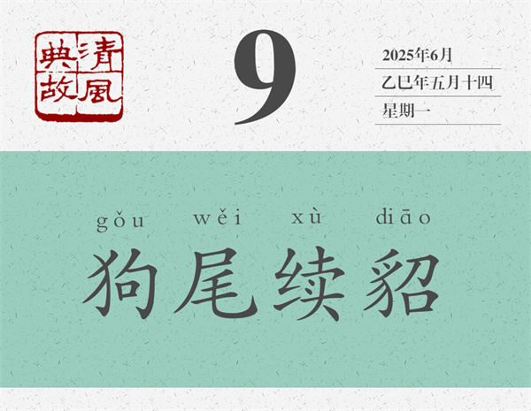 狗和貂是有區(qū)別的,狗尾和貂尾也一定是有區(qū)別的。簡單地說,狗尾平平常常,貂尾十分珍貴。可想而知,頭上頂著狗尾巴的官員是些什么人,人們見了頭上頂著狗尾巴的官員是什么感覺。后即以“狗尾續(xù)貂”為典,比喻不好的東西拼接到了好東西上,不好的事情連綴到了好事情上,有前后不相稱、不協(xié)調的意思。黃庭堅詩《再次韻兼簡履中南玉》之三:“經(jīng)術貂蟬續(xù)狗尾,文章瓦釜作雷鳴。”李漁《閑情偶寄·詞采》:“微疵偶見者有之,瑕瑜并陳者有之,尚有踴躍于前,懈弛于后,不得已而為狗尾貂續(xù)者亦有之。”