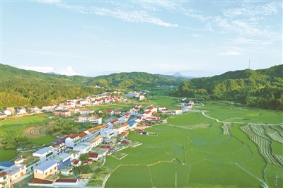 安徽省岳西縣紀委監委聯合縣農業農村局開展集中整治行動,助推高標準農田建設提質增效。圖為該縣古坊鄉上坊村境內,整修后的高標準農田與錯落有致的民居、綿延的青山交相輝映。羅慧圓 攝