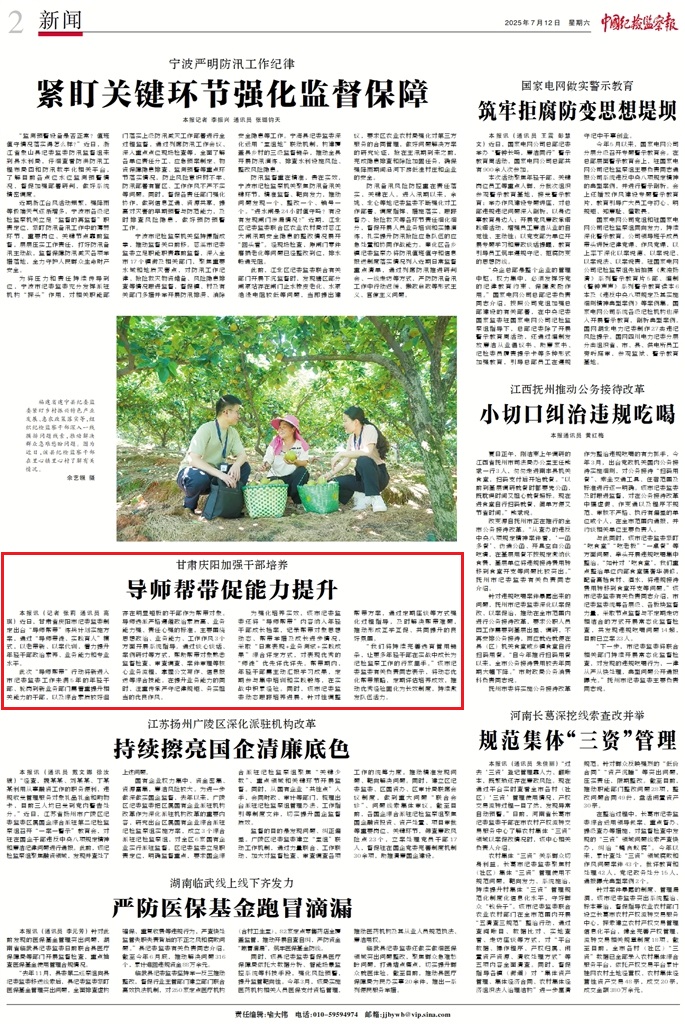 近日,甘肅省慶陽市紀委監委制定出臺“導師幫帶”練兵計劃實施方案,通過“導師帶徒、實踐育人”模式,以老帶新、以案代訓,著力提升年輕干部政治素養、業務能力和專業水平。