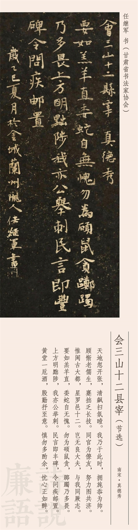 公元1232年,南宋官員真德秀到福州擔任知府,到任后把下轄12個縣的知縣召集在一起集體談話,擺事實、講道理,談廉政、申紀律,事后將談話內容寫成了詩,就是今天我們看到的這首作品。這是一首五言敘事詩,長達250字,這里我們節選后半部分。
