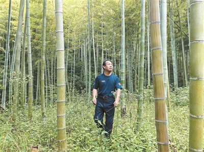 2011年,余村啟動竹林修復工程,土生土長的余村人汪苗青成為首批護林員。他告訴記者,“在竹林開發中我們有個規矩:只能砍6年以上的竹子、不能砍新竹,村民們也都自覺地不再私砍濫伐,這都是對生態環境的守護。”