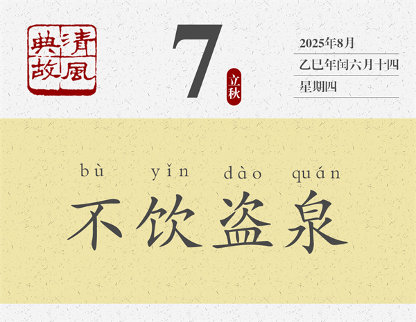 “盜泉”因一個“盜”字,而被賦予不義之財、不當之得之意。孔子不飲盜泉,就是要躲開它,要遠離它,以示其清高,以表其操守。孔子的大弟子曾參也是這樣,《淮南子•說林訓》:“曾子立廉,不飲盜泉。”后世即以“不飲盜泉”為典,比喻珍惜名譽,自守清白。白居易《感鶴》:“鶴有不群者,飛飛在野田。饑不啄腐鼠,渴不飲盜泉。”