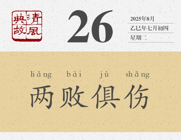 講完這個故事,陳軫言歸正傳,對秦惠王說:“今韓魏相攻,期年不解,是必大國傷,小國亡,從傷而伐之,一舉必有兩實。此猶莊子刺虎之類也。”秦惠王聽從了陳軫的建議,后來“大國果傷,小國亡,秦興兵而伐,大克之”。后世即以“兩敗俱傷”為典,比喻爭斗雙方都會受到損失,誰也得不到好處,也用來形容毫無意義的爭斗。《新五代史•宦者傳論》:“雖有圣智,不能與謀。謀之而不可為,為之而不可成。至其甚,則俱傷而兩敗。”