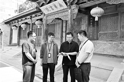 甘肅省張掖市紀委監委聚焦文物文化遺址保護、規劃審批、資金撥付使用等關鍵環節,強化日常監督。圖為該市紀檢監察干部在甘州區西來寺巷歷史文化街區了解有關情況。王夢婷 攝