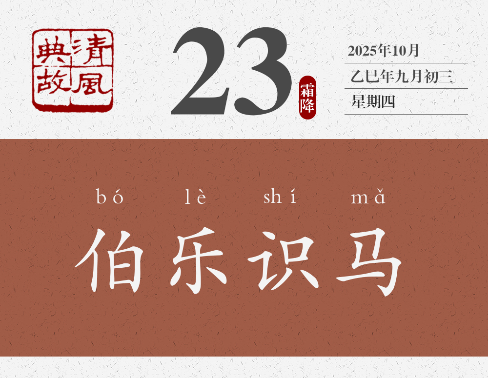 春秋秦穆公時,有一個著名的相馬師叫孫陽。因為神話傳說中,掌管天馬的神仙叫伯樂,人們?yōu)榱吮硎緦O陽的敬佩,就稱他為伯樂。屈原《九章•懷沙》以及《莊子•馬蹄》《列子•說符》都曾經提到過伯樂。《戰(zhàn)國策•楚策四》里,春申君的舍人汗明,向春申君講了一個關于千里馬的故事:“夫驥之齒至矣,服鹽車而上太行。蹄申膝折,尾湛胕潰,漉汁灑地,白汗交流,中阪遷延,負轅不能上。伯樂遭之。下車攀而哭之,解纻衣以冪之。驥于是俛而噴,仰而鳴,聲達于天,若出金石聲者,何也?彼見伯樂之知己也。”