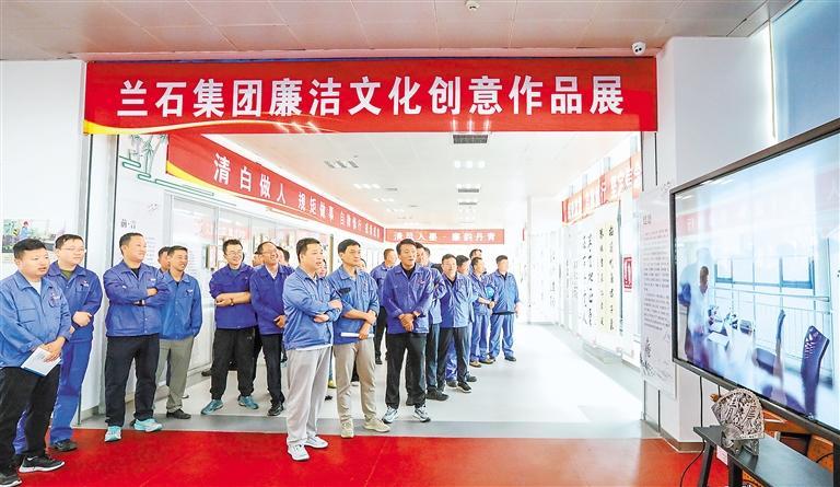 蘭石集團黨員干部職工參觀廉潔文化創意作品展。蘭石集團紀委供圖