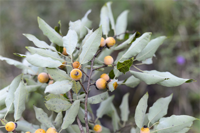 簡介:君遷子,落葉喬木。葉橢圓形,花淡黃色。花期4-5月,果期9-10月。成熟果實可生食或釀酒、制糖、制醋。果實藥用,可止消渴,去煩熱。木材質硬、耐磨損,可做紡織木梭、雕刻、小用具等,且材色淡褐、紋理美麗,可做精美家具和文具。實生苗常作柿樹的砧木。