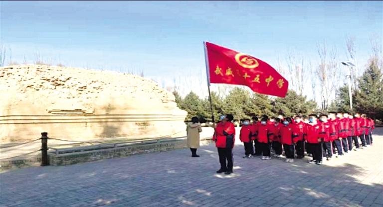 2019年8月,涼州會盟被編入教育部統編高一歷史教材,這是一件具有重大意義的事情,為全國中學生鑄牢中華民族共同體意識發揮了積極作用。為生動呈現統編教材中涼州會盟這一重大歷史事件,受央視華語環球節目中心《國家記憶》欄目組委托,武威市電視臺攝制組和武威十五中學師生50多人親臨涼州會盟紀念館,現場參與采訪拍攝現場教學的相關事宜。