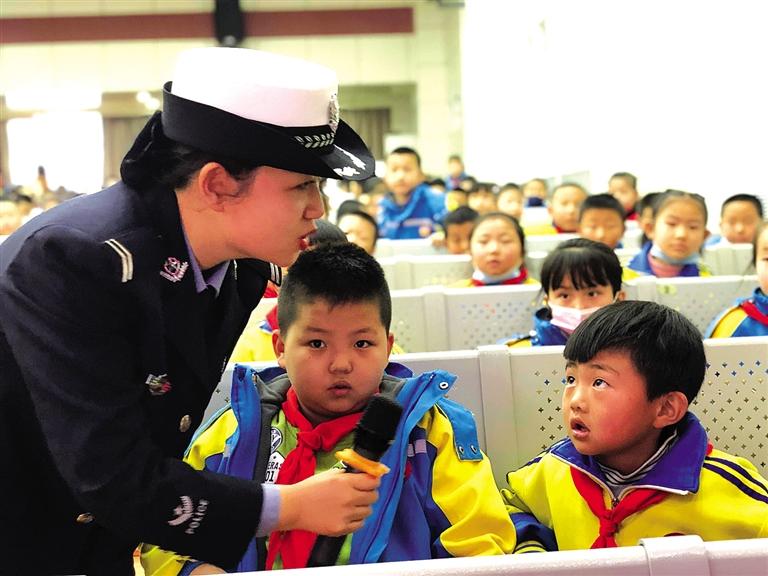 民警帶領同學們學做“交通警察指揮手勢”,通過提問交通標志等一系列“寓教于樂”的形式,加深了學生對交通規(guī)則的理解,號召同學們當好交通安全宣傳員,把學到的交通安全知識與父母分享,讓大家一起遵守交通規(guī)則,遠離交通危險行為,提高自我防護意識。