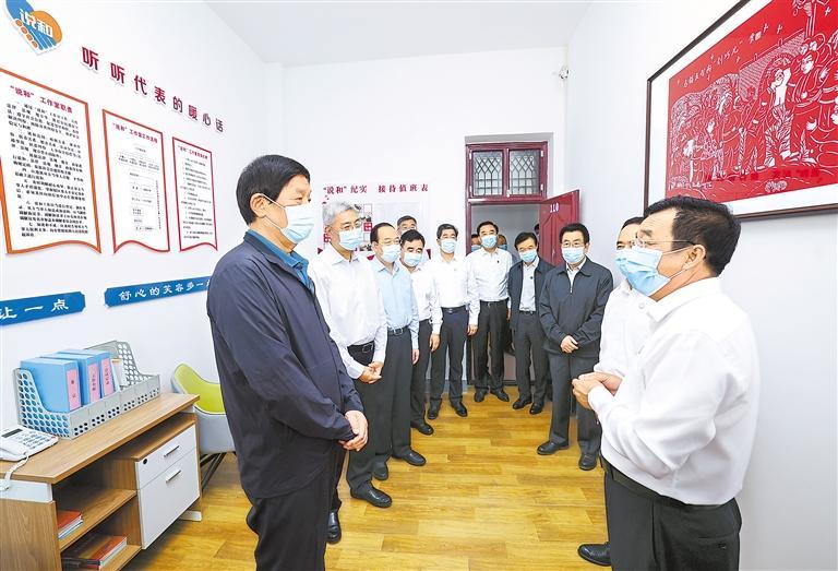 8月26日至28日,中共中央政治局常委、全國人大常委會委員長栗戰書在甘肅就黃河保護法立法進行調研。這是8月26日,栗戰書在慶陽市西峰區后官寨鎮人大代表之家調研。新華社記者 龐興雷