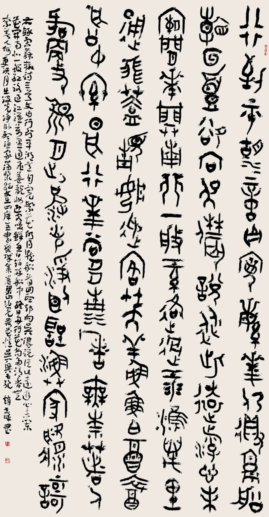 此次展覽展出的184件八尺大幅書法作品,主題鮮明,諸體兼?zhèn)洹N弩w占比平衡,一改過去篆書篆刻作品少、好作品更少的局面。書法家區(qū)別于他人的不同之處,在于書法家是用點(diǎn)畫結(jié)體和章法中的各種對比關(guān)系和形勢變化來觀察世界、認(rèn)識(shí)世界和表現(xiàn)世界的,倡導(dǎo)注重日常書寫,將書法創(chuàng)作變成日常的書寫活動(dòng),變成生活的一部分,不為創(chuàng)作而創(chuàng)作。入選的作者以70后、80后、90后為主體,展現(xiàn)出甘肅書法的源遠(yuǎn)流長、青藍(lán)相繼、賡續(xù)文脈。