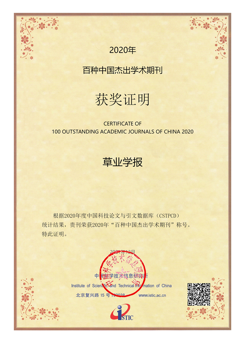12月29日,中國科學技術信息研究所發布《2022年中國科技論文統計報告》,并評選出“2021年度中國百種杰出學術期刊”,其中甘肅省2種,分別是:中國草原協會、蘭州大學草地農業科技學院主辦的《草業學報》,中科院寒旱所主辦的《高原氣象》。