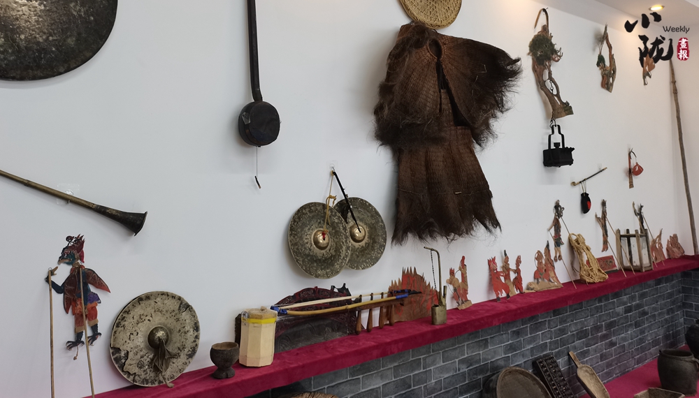 一張幕布、兩盞白熾燈、四五老藝人、七八件簡(jiǎn)單樂(lè)器,藝人在白色幕布后面,一邊用手操縱戲曲剪紙人物,一邊用本地流行曲調(diào)唱述故事,同時(shí)配以器樂(lè)以增加演戲氣氛。