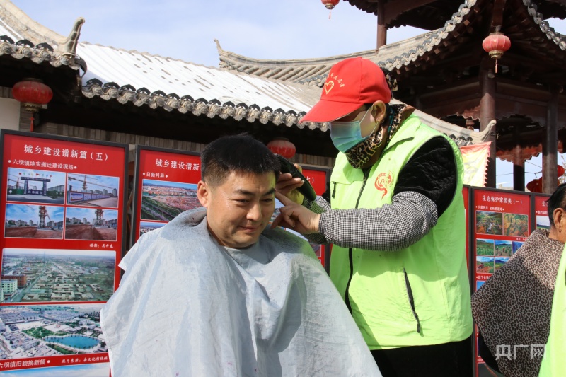 志愿者為群眾剃頭(央廣網發 趙玉梅 攝)