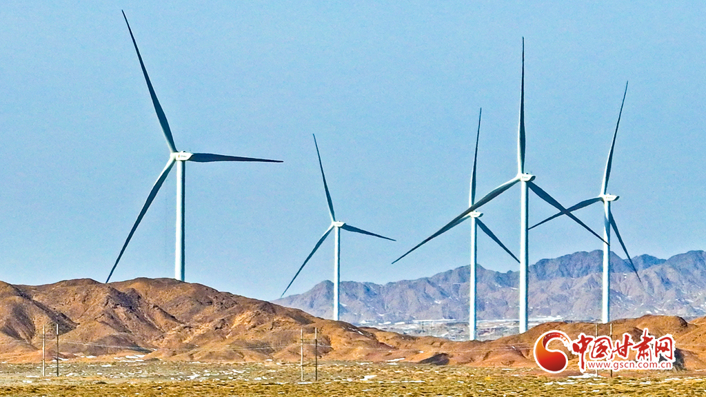 2月21日,張掖市臨澤縣平川北灘30萬千瓦風電項目建設現場,已建成的風電機組。