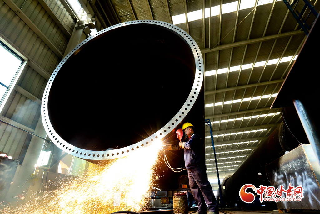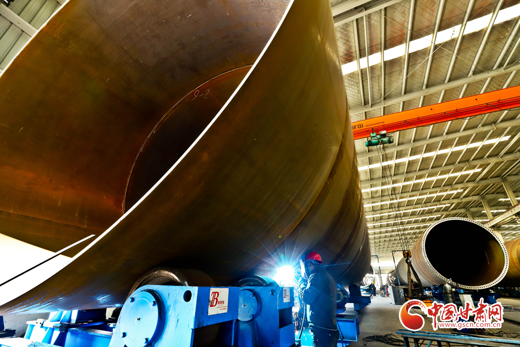 近日,在高臺縣一風電裝備生產基地內,工人們正在加快訂單生產,進行設備調試,保障風力發電機組的生產運行。