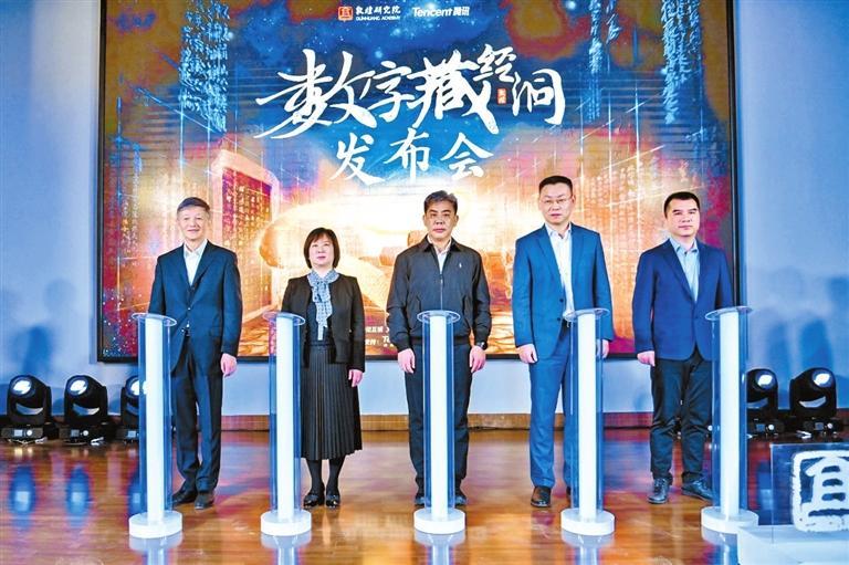 在當(dāng)日舉辦的發(fā)布儀式上,國(guó)家文物局科技教育司司長(zhǎng)羅靜、甘肅省文物局副局長(zhǎng)白堅(jiān)、敦煌研究院院長(zhǎng)蘇伯民、騰訊集團(tuán)市場(chǎng)與公關(guān)副總裁李航、騰訊互娛副總裁崔曉春共同按下啟動(dòng)按鍵,宣布“數(shù)字藏經(jīng)洞”上線。即日起,公眾可以通過(guò)“云游敦煌”小程序或“數(shù)字敦煌”官網(wǎng),直接登錄“數(shù)字藏經(jīng)洞”。