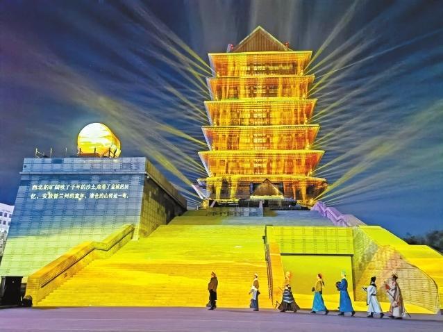 在黃河樓景區(qū),平時只有周末觀演的“黃河頌·大有蘭州”多媒體實(shí)景演出開啟了為期一個月的常態(tài)化巡演,每晚9時,璀璨的光影映襯著巍峨雄壯的黃河樓,在3D Mapping多媒體技術(shù)的加持下,帶給游客難忘的光影夜游體驗(yàn)。而近日黃河樓入園游客較平時也增長了3倍之多,登樓參觀人數(shù)日均達(dá)到3000人次。