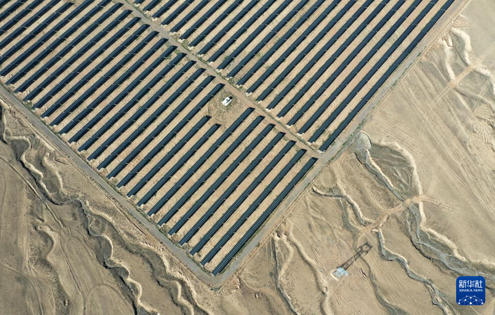 這是中國能建張掖甘州南灘30萬千瓦光伏發(fā)電項(xiàng)目(8月11日攝,無人機(jī)照片)。新華社記者 金良快 攝