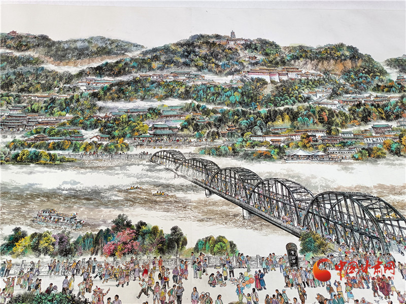 把蘭州畫給你看,山水城市蘭州在國畫里如何描繪?蘭州七中美術(shù)教師李建春用筆墨描繪了屬于蘭州的清明上河圖,長9.6米,寬1.46米的長卷囊括了黃河風(fēng)情線的山水,還有中山橋河、金雁黃河大橋巧妙切分畫面,讓蘭州的人文在虛與實中得到最好的釋放。