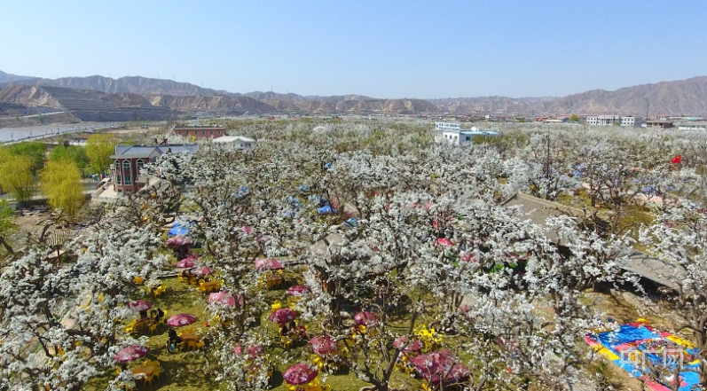 什川古梨園梨花爛漫白如雪(央廣網發 陳立穩 攝)