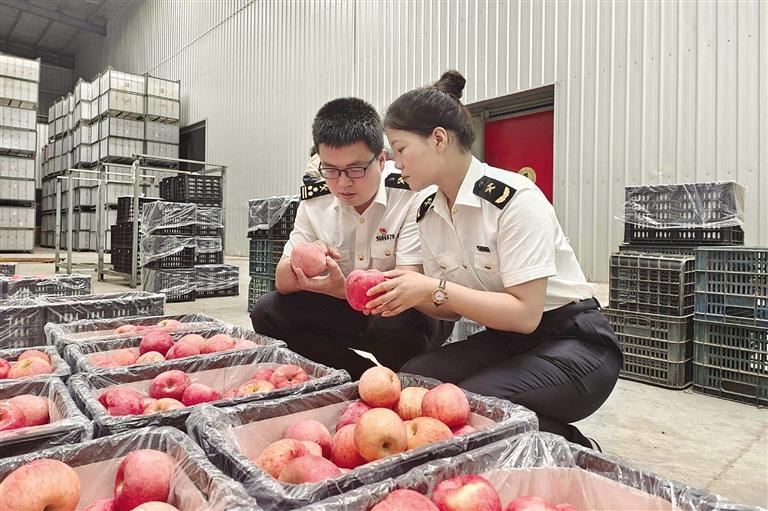 圖為海關關員檢查出口水果。據悉,上半年甘肅省出口水果價值4.56億元,同比增長42.7%。