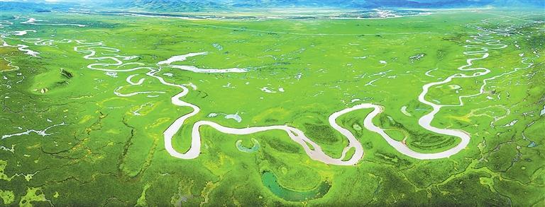“瑪曲,藏語中就是‘黃河’的意思,黃河從這里積蓄了前行的能量。”金道才讓指著眼前的阿萬倉濕地說,草皮下豐富的植物根系和土壤就像無數的毛細血管,源源不斷為黃河提供水源補給。