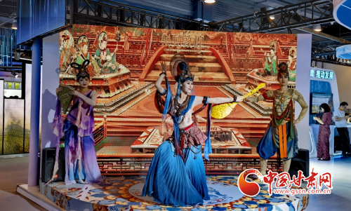 甘肅境內各類文化燦若星河,世界文化遺產數量全國第二,文化資源豐富度全國第五。在2024年服貿會甘肅館內,文化板塊中的敦煌文化尤為亮眼。通過文化會展產業、文化演藝產業、文化IP產業、科技成果轉化、文化對外交流等5個方面展現敦煌國家文化出口基地培育創建情況。參展企業通過圖片、實物等形式集中展示甘肅非物質文化遺產、文化創意產品等。