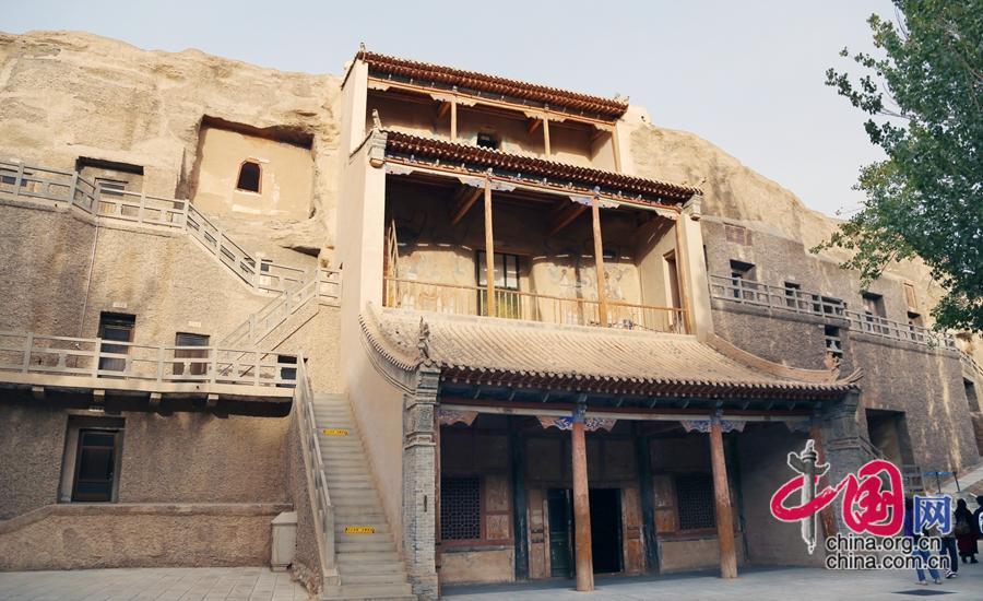 據(jù)敦煌研究院資料顯示,石窟以彩塑為主體,四壁及頂均彩繪壁畫(huà),地面漫鋪花磚,窟外有窟檐(或殿堂)、棧道,窟窟相通相連,是以石窟建筑、彩塑和壁畫(huà)三者合一的佛教文化遺存。