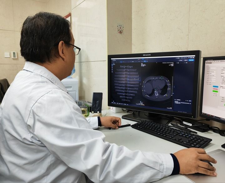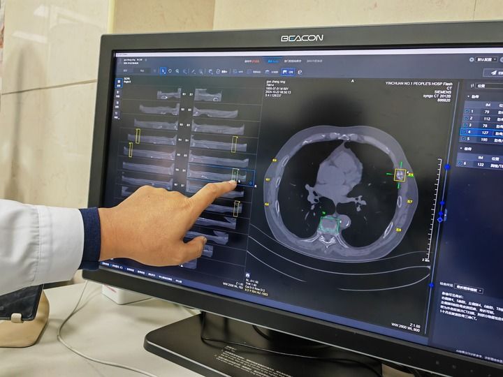 在寧夏回族自治區銀川市第一人民醫院,放射科副主任醫師姜榮興打開電腦上的人工智能輔助診斷系統,導入病患CT影像資料后,輕點鼠標,系統瞬間完成初篩——24根肋骨逐一呈現在屏幕上,骨折和疑似骨折的部位一目了然。醫生再對初篩結果作出診斷處理,全程用時不到4分鐘。