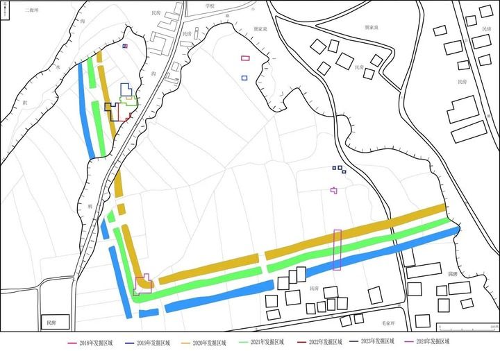 圖為甘肅省定西市臨洮縣寺洼遺址歷年發掘區及“圍壕(溝)”分布圖。(甘肅省文物考古研究所供圖)